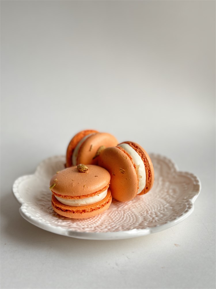 Нежные миндальные половинки с кремом на бельгийском молочном шоколаде с маракуйей и начинкой из сочного манго